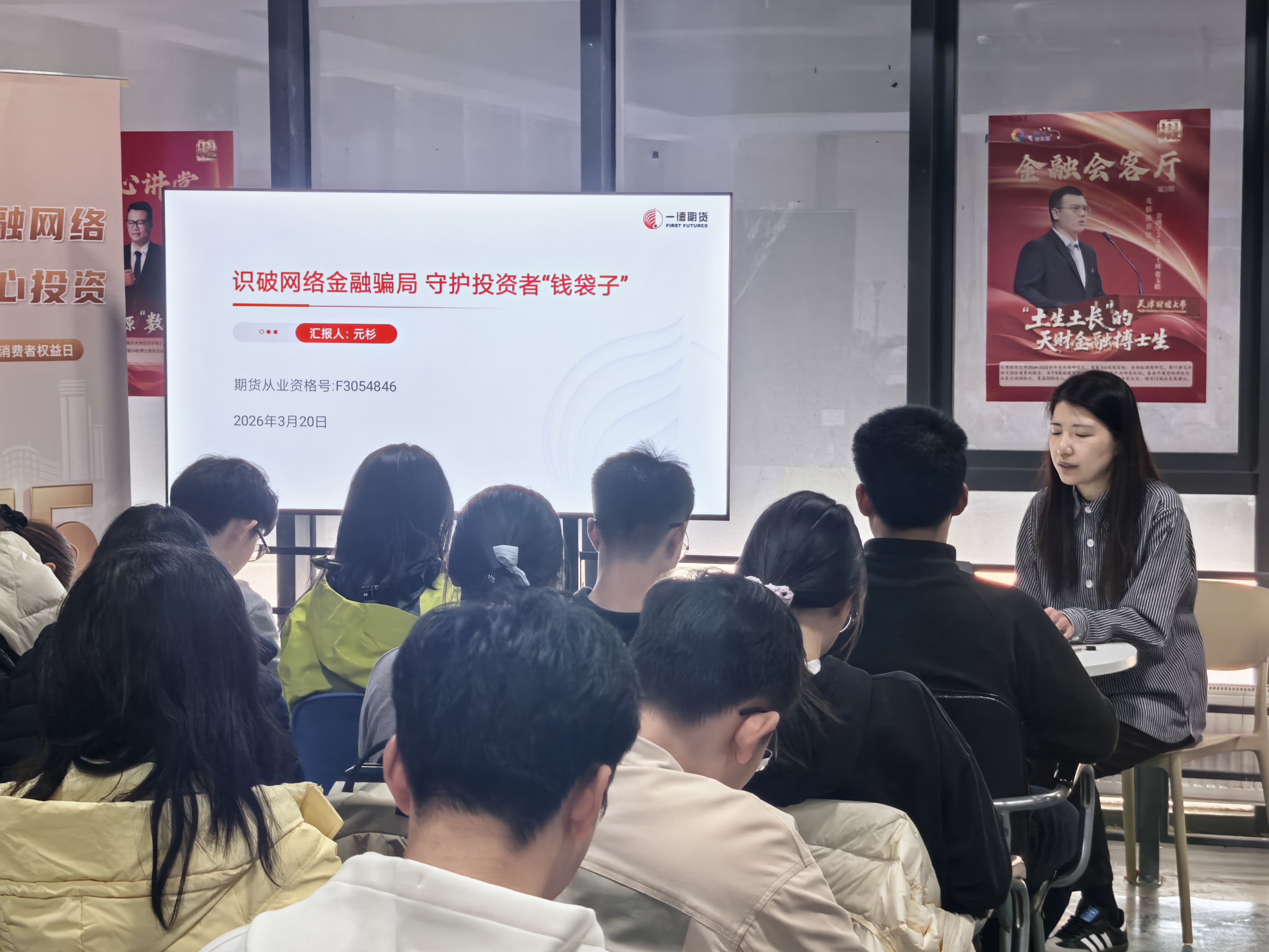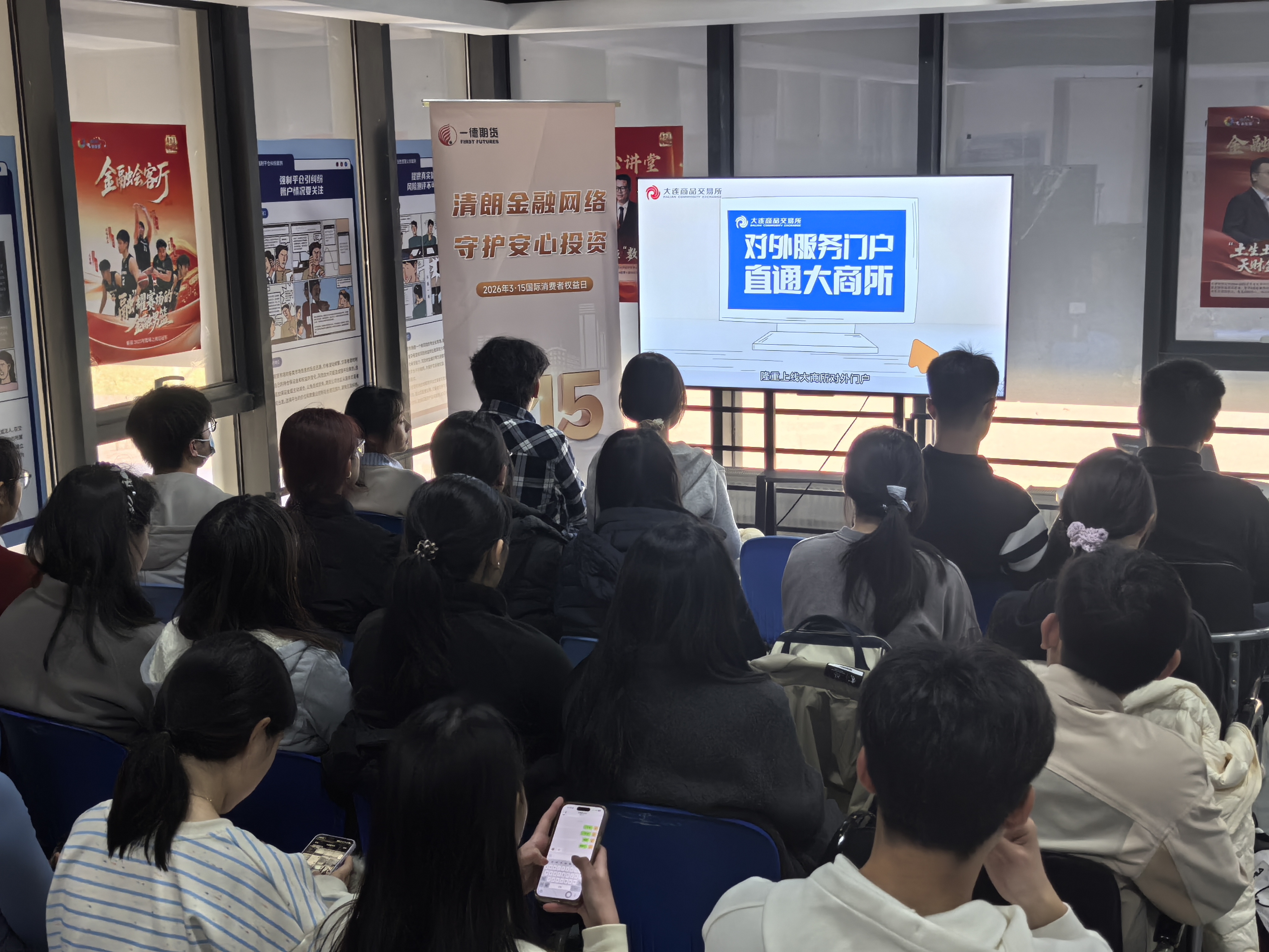 为积极响应监管部门关于投资者保护工作的号召,落实期货经营机构投教主体责任,一德期货有限公司及天津财经大学·一德期货联合投教基地(以下简称“一德期货投教基地”)于2026年3月20日,在天津财经大学成功举办“DCE·中小同行——‘清朗金融网络 守护安心投资’3·15金融消费者保护宣传日”进校园专题培训活动,近40名师生现场参与。本次活动得到大连商品交易所与天津证监局的大力支持,旨在普及金融法律知识,提升大学生群体的风险识别与防范能力。
